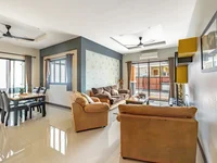 Exterior: The house features a front yard with a lawn and a seating area, complete with a marble table. On the side of the house, there’s an outdoor dining area suitable for gatherings with guests. At the back, there’s a spacious area for storage or laundry.