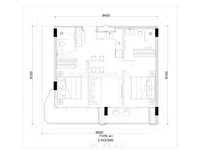 Spacious 2-bedroom unit on the 3rd floor, created by combining two one-bedrooms into a unique layout.