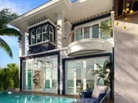 Виллы 2-этажные с 3 спальнями (площадь около 370 м²) либо расширенные варианты до 485 м² участка. Каждая вилла включает частный бассейн, садовую зону и крытую/открытую террасу, парковку на 2-3 автомобиля. Просторные жилые зоны: гостиная-столовая, открытая кухня, хозяйственные помещения, на втором этаже — спальни с ванными комнатами и гардеробными. Территория комплекса включает клубный дом, тренажёрный зал, детскую игровую зону, ресторан, общий бассейн, круглосуточную охрану и видеонаблюдение. Использование высококачественных материалов в отделке: камень, дерево, натуральные текстуры; стиль сочетает простоту, честность и чистоту линий.