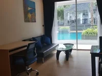 The unit sits on the 1st floor and offers a well planned 48 square meter layout. It features one bedroom and one bathroom, providing comfortable daily living. The living area connects smoothly to a balcony with direct access to the swimming pool. The unit comes fully furnished with a European style kitchen, oven, washing machine, and air conditioning. The bathroom includes both a shower and a bathtub.
