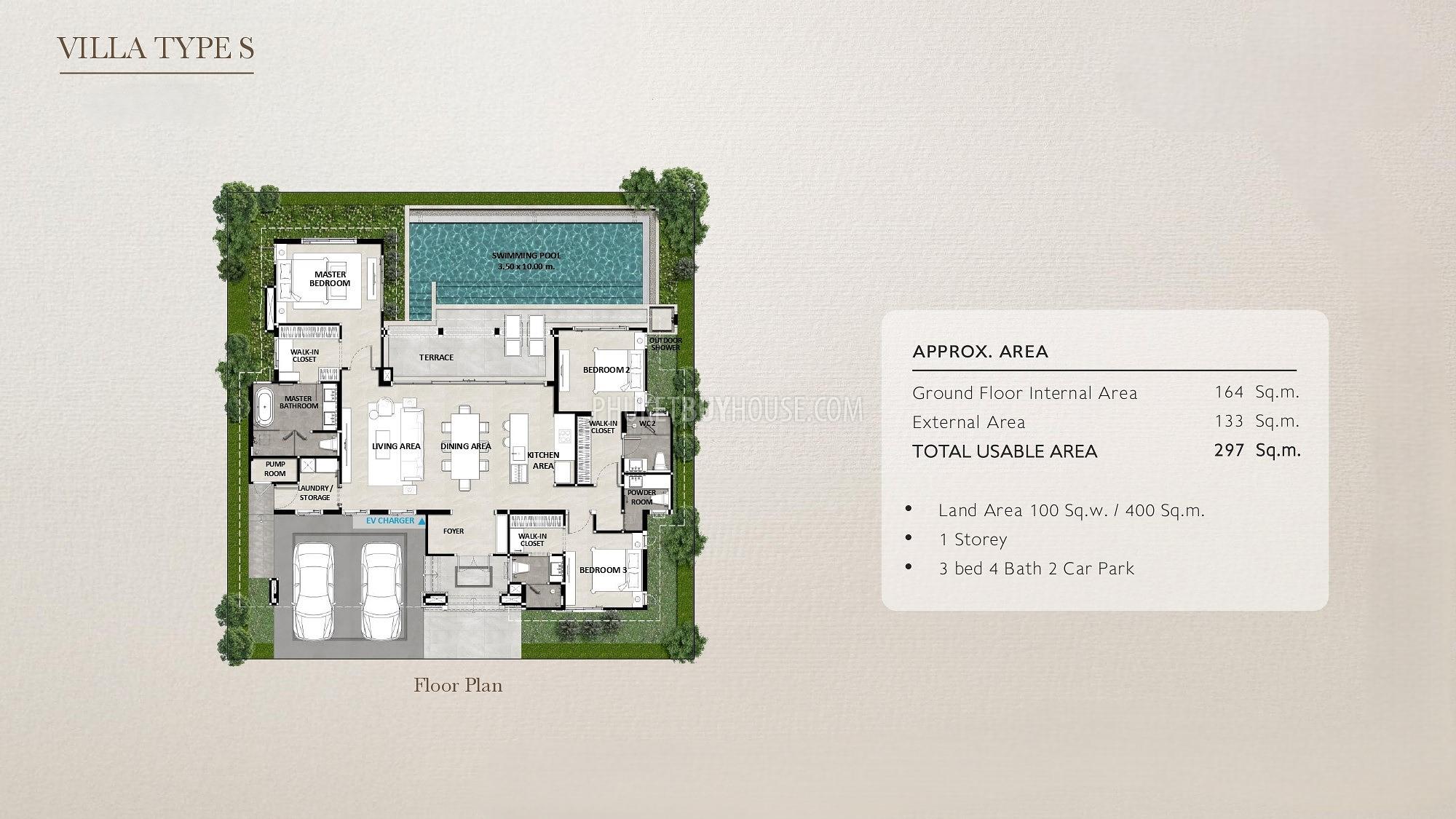 Эта вилла предназначена для семей, которые считают Пхукет своим домом, а не остановкой. Планировка одноуровневая, практичная и простая в проживании, с четким разделением между общими пространствами и частными спальнями.