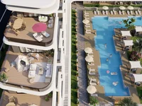 Жилой комплекс построен на участке площадью 17 251 м² и включает 3 семиэтажных корпуса с 250 квартирами с 1, 2 или 3 спальнями. К услугам жителей три бассейна, крытая парковка, общий сад, бар у бассейна, доступ к пляжу, зона барбекю, футбольное поле, баскетбольная и теннисная площадки, сауна, генератор, круглосуточная охрана, камеры видеонаблюдения, ресепшн, резервуары для воды, звукоизоляция и лифты.