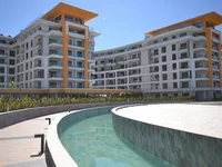Квартира в Аланье, Анталия, оборудована скрытой потолочной подсветкой, проточным водонагревателем, мраморными настенными покрытиями, гранитной кухонной столешницей, встроенной кухонной техникой марки Franke, холодильником, посудомоечной машиной, микроволновой печью, скрытой диодной подсветкой под кухонными шкафами и стеклянными ограждениями на балконе.