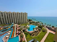 Собственный песчаный пляж, оборудованный зонтиками, шезлонгами, душем, пирсом