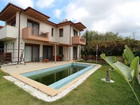 Вилла выделяется великолепным видом на лес и уникальным расположением на угловом участке. Дом построен на земельном участке площадью 303 м² и включает 3 ванные комнаты, 3 балкона, просторную террасу с видом на частный бассейн и ухоженный сад, где растут пальмы, сосны, лавр и бугенвиллии. Частный бассейн размером 8x4 м, зона барбекю, уголок для отдыха с качелями и тенистые зоны для отдыха создают атмосферу уединения и комфорта. Также на территории есть крытая парковка и камеры видеонаблюдения.