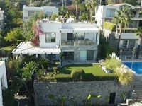 Этот дом с великолепным видом на море полностью меблирован и включает 4 спальни, отдельную кухню, просторную гостиную и 4 ванные комнаты. Планировка сочетает в себе как открытые, так и изолированные зоны для удобства. С террасы открывается потрясающий вид на залив Тюркбюкю. Кроме того, в доме предусмотрены дополнительные удобства: хозяйственная зона с барной стойкой и мини-холодильником, а также уютная зона отдыха и джакузи в саду.