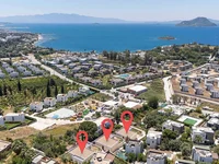 Виллы на продажу в Бодруме находятся в пешей доступности от инфраструктуры и социальных объектов: всего 400 м до пляжа, 2,5 км до Гюмюшлюка, 6 км до пристани Тургутрейс D-Marin, 12 км до Ялыкавака, 20 км до государственной больницы Бодрума, 22 км до центра Бодрума и 55 км до аэропорта Бодрум-Милас.