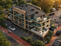 Двухуровневая квартира с 3 спальнями имеет общую площадь 180 м² и отличается просторной планировкой. На террасе установлен джакузи, создающий дополнительное пространство для отдыха. В квартире предусмотрены шкаф для верхней одежды, встроенная кухонная техника Siemens, кондиционеры Mitsubishi и электрические жалюзи. Использованы качественные материалы и оборудование, включая окна Rehau или Pimapen, керамику Kütahya и Çanakkale, а также сантехнику Artema и Vitra. В квартире выполнены тепло- и звукоизоляция.