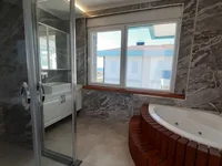 Вилла в районе Демирташ, 200 м2 4+1, на земельном участке 4,5 соток. 4 спальные комнаты, гостиная совмещенная с кухней, 3 ванные комнаты, одна из них с джакузи, встроенная бытовая техника, полы с подогревом, люстра светодиодная, камеры видеонаблюдения, сигнализация, автоматические двери и ставни, подземный переход на море, бассейн, камин барбекю, сад.