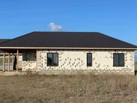 Дом построен из качественного газобетона, с черной металлочерепицей подходящей по стилю к окнам.
