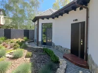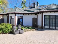 Общая площадь 220 кв.м. Панорамное остекление. Гостиная с действующим камином. Свежий ремонт. Мебель, техника. Установлены солнечные панели, зелёный тариф. Отопление обеспечивают 5 современных кондиционеров, резервный электрокотёл.