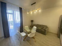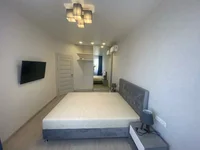 24079 Продам 1-комнатную квартиру в новом комплексе Родос. Располагается на среднем этаже. Выполнен стильный ремонт. Просторная комната, уютная прихожая и комфортабельная кухня-студия. Из кухни выход на балкон террасного типа. Оборудована гардеробная. Установлен кондиционер. В стоимость входит мебель и бытовая техника.