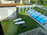 2й этаж - 3 спальни, гардероб, санузел. . Участок 3,52 , госакт на землю, право собственности на дом. Басейн 6.2*3*1.5 с куполом, зона барбекю. Двор выложен тротуарной плиткой, есть паркоместа на 3-6 авто с навесом. На участке туалет та душ, хоз. постройка-генераторная, газон та туи. Видео наблюдение и освещение участка. автоматические ворота! Крыша –метало черепиця. Фасад – барашек. Фундамент блочнокаркасний (подушка железобетон) Стены – железобетонные блоки 300 мм Утепление, гидроизоляция, перекритие – монолитные плиты Высота потолка – 3 метра. Комуникации Газ рядом з участком, Вода, Электрика, Яма. Оптопление электро котел, теплый пол на первом этаже, на втором - теплый пол и батареи. До моря 10 хвилин пешком, 320 000 $