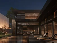 1 этаж: просторная кухня гостиная с выходом во двор к бассейну, 3 раздельные спальни с панорамным остеклением и выходом во двор, санузел и гардеробная.