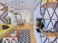 Выполнен дизайнерский ремонт, основные стилевые направления скандинавский+лофт. В интерьере обилие натуральной древесины, стекла, металла (кленовый паркет, деревяная мебель и двери). Выполнена шумоизоляция. Остается вся мебель,бытовая технтерьера.