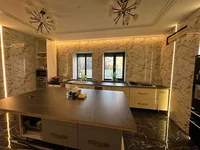 Используемые материалы: гранит-мрамор, накат стен-венецианка, ЛЭД освещение, современные Немецкие и Испанские люстры. Подогрев полов во всех помещениях, инфракрасный пол - умное тепло, натуральный ЭКО паркет,