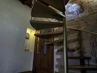 Изящная кованая винтовая лестница ведет на второй этаж, где находятся три раздельные комнаты, балкон и просторный санузел.
