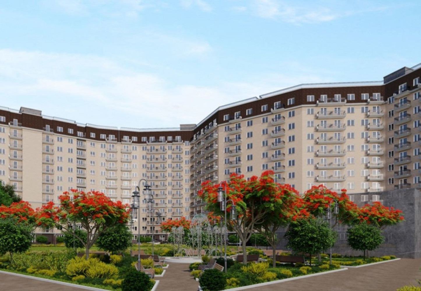 На территории жилого комплекса есть наземная стоянка для автомобилей, зеленая зона отдыха с фонтаном и закрытый внутренний двор без машин.
