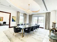 Столовые:а) Большая формальная столовая, первый этаж с подобранной книгой и ldquo; Calacatta Oro Marble ”б) Столовая, лаундж на первом этаже с “ Канадский паркет ” напольное покрытиеc) столовая, лаундж на первом этаже с “ Crema Marfil Marble ”Большой двухместный формальный лаундж с книгой “ Calacatta Oro Marble ”б) Большой повседневный лаундж с столовой и усилителем; Кладовая, цокольный этаж, с “ Crema Marfil Marble ” и столовая / кладовая с “ канадский паркет ” напольное покрытиеc) Большой повседневный лаундж с столовой и усилителем; Кладовая, первый этаж, с “ Crema Marfil Marble ”d) Небольшой лаундж для 2 Спальня Гостевые люксы – Полностью мраморныйSwarovski Austria Люстры ручной работы с резьбой и подсветкой Прожекторы с золотом и Серебряные потолки