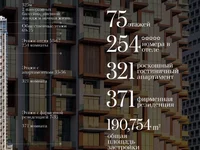 На первом этаже парадный вход с кофейней и эффектным въездом в паркинг. 32 этажа занимают двухуровневые резиденции для постоянного проживания со своим: