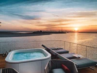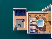 На верхнем этаже площадью 140 м² расположены гостиная и обеденная зоны, частное джакузи, место для принятия солнечных ванн и небольшая кухня. Ограждения выполнены из полупрозрачных панелей, отсюда открывается прекрасный вид на море.