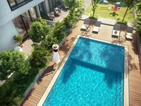 Жильцам доступен целый ряд удобств премиум-класса: инфинити-бассейн на крыше, тренажерный зал для мужчин и женщин, офисные и общественные зоны для отдыха. Разрешено проживание с домашними животными. На территории также есть магазины, круглосуточная охрана, услуги консьержа, большая парковка и доступ к паркам и зонам отдыха. Комплекс отделан экологичными и качественными материалами и создан для комфортной и стильной жизни.