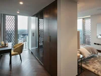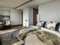 Bedrooms – Tranquil retreats with luxurious Oak Parquet flooring, serene wall finishes, and automated ThermoVeil blinds integrated with the Lutron smart system for privacy and ease.