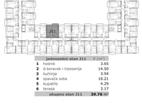 40м2 Квартира под строительство - Забьело, Подгорица Квартира площадью 40 м2 продается в строящемся здании Zetagradnja, расположенном в Забьело недалеко от Techno Max. Ожидаемая дата завершения - декабрь 2025 года. Квартира расположена на втором этаже и имеет право на покупку через ипотеку. Ориентация: Восток. Показанные фотографии представляют собой уже завершенное здание того же типа, чтобы дать четкое представление об окончательном облике, так как здания идентичны по дизайну.