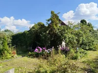 Ideal place for the construction of a country house The land plot is 22.05 acres, fenced. The survey is done. At the station: The house (104.3 sq.m.) of chopped logs of 1928, the foundation - butt pillars, requiring a good remont and complete renovation. Garage - brick walls, foundation tape. Gas has been supplied to the house on the station. The 10m well is in the house. Electricity about - 8 kW. Entrance - asphalt