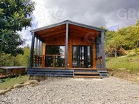 Plot area - 425 m2, house area - 42 m2, 2 rooms. Price: 7.9 million rubles. New house in a small cottage village under construction in the "Barnhouse" style. The territory is closed, no strangers. Verkhneye Loo, 5 km. from the sea. Good transport accessibility. An actively developing area, there is a school, shops, a restaurant, a year-round water park and at the same time a forest nearby, a beautiful mountain gorge, a wonderful panoramic view. Individual housing construction status, cadastral value, mortgage possible. The designer and contractor of construction works is the company "Serious Business". The house is built using frame-frame or so-called "Canadian" technology - a frame made of kiln-dried wood treated with fire and bioprotection, insulated with slab mineral wool on screw piles with a gable roof. Two rooms, a bathroom, a terrace. Ceiling height 2.4 - 3.0 m. Autonomous water supply - artesian well, 15 kW power grid. Rural electricity tariff. Sewage - individual autonomous LOS. Facade finishing with imitation timber painted with Tikkurila paints. Roofing - corrugated sheet with polymer noise-absorbing coating.The house has a fine finish made of high-quality materials: factory-painted "shtil" lining with safe water-based dyes, waterproof QuickStep laminate, ProfilDoors interior doors. The bathroom has "warm floors" and plumbing is installed. Panoramic floor-to-ceiling windows and a roof terrace with a magnificent view. The house is ready for occupancy.