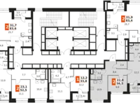 Maximum discounts at 100% payment. Direct sale from the developer! Business class residential complex. 2-K apartment No. 97 is sold with a total area of 56.4 sq.m on the 21st floor of a 44-storey building. WHITEBOX finish. Peculiarities: