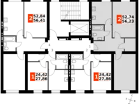 Direct sale from the developer! Close residential complex Comfort Plus. 2-K apartment No. 52 is sold with a total area of 56.23 sq.m on the 4th floor of a 4-storey building. Without finishing. Peculiarities: