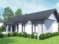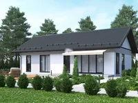 The house is located in the IWS category. On the territory there is a parking for two cars, an open terrace, a lawn, and the pedestrian zone is made of pavement slabs.