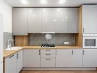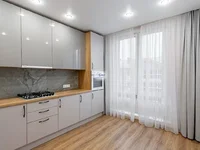 The kitchen is fully equipped with a headset and equipment. The color combination is thought out to the smallest detail, creating a feeling of coziness and style.