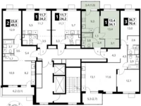 For sale 1-k apartment No. 712 with a total area of 34.1 sq.m. on the 6th floor of a 17-storey house. No finishing.