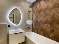 A residential quarter of two nine-storey houses is located in the Leningrad district of Kaliningrad, on Starshiny Dadaev Street. From the LCD convenient exit towards the sea coast through Alexander Nevsky Street. To the city center 10 minutes by car. A five-minute walk away is Lake Superior with bike paths. The area of the complex with a sufficiently developed infrastructure. In walking distance there are everything you need for a comfortable stay: modern kindergartens, schools and universities. In the decoration of the apartment, the following materials are used: - Laminate - Ceramic tiles - Ceramic tiles - wallpaper In the bathroom, corridor and kitchen-living room, water warm floors with a collector group are installed. acrylic bath, mixer with shower column, hanging toilet with installation, hygienic shower. There is also a storage cabinet and a suspended cabinet with a sink. In all rooms stretch matte ceiling and interior doors from the company "PORTIKA" in black aluminum edge. Painted wallpaper on the walls. The apartment is ready for immediate settlement! Object 26256-32755.