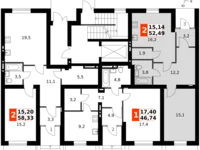 For sale 1-k apartment No12 in the delivered building with a total area of 51.2 sq.m. on the 1st floor of a 4-storey house.