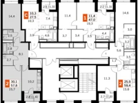 For sale 2-k apartment No654 with a total area of 57.8 sq.m. on the 8th floor of a 30-storey building. No finishing.