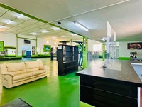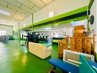 On the ground floor there is a spacious hall with sports equipment, men's and women's locker rooms, toilets, reception, a hall for group classes. On the first floor there are 3 more halls for group classes and training, as well as an apartment with a separate entrance, with 2 bedrooms, a spacious living room, a kitchen and a bathroom.