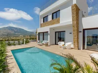 We present you a new villa in Finestrat in a closed urbanization overlooking the sea and the Puig Campana mountain. The villa is located just 8 km from Benidorm, a popular city in Spain, with chic beaches, restaurants, bars, shops, various entertainments, water parks. Villa in two floors with an area of 202 sq. m and consists of: four bedrooms, four bathrooms, a spacious living room with an open kitchen and an entrance hall, a solarium of 95 sq. m., where you can admire chic views, as well as install a jacuzzi or barbecue, a personal pool. The house has a modern design - a combination of natural stone and wood give the interior coziness and luxury. The price includes: electric blinds, panoramic windows, built-in cabinets, full equipment and a warm floor in bathrooms, kitchen furniture and equipment, alarm, air conditioning, lighting, dressing room, parko place. The latest technologies and high-quality materials are used in construction. The villa is ready to install a smart home system. The Costa Blanca is a paradise. Only on this coast of the Mediterranean sea 170 luxurious beaches and coves. Various landscapes, natural parks, salt lakes and mountains. The province of Alicante is known for 22 golf courses. It is a wonderful place to live, relax and work. Buying property in Spain, you can obtain a residence permit in Spain. Our company helps to issue a residence permit of any type.