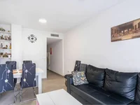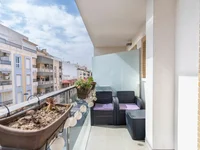 The apartment has two bedrooms and two bathrooms, a separate kitchen, a living room with a dining room and access to the terrace. The terrace overlooks the city.