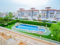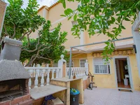 Three-level semi- detached house for sale, near La Mata Beach in Torreblanca, Torrevieja . On the first floor there is a terrace at the entrance of about 15 m2 facing northeast, the living-dining room, a separate kitchen complete with appliances with access to the rear terrace of 25 m2 facing southwest, a barbecue, a bathroom. The second floor consists of two bedrooms with fitted wardrobes, a 10 m2 balcony, a full bathroom. The third floor has a bedroom and a private solarium of about 25 m2 with partial sea views. In the semi-basement there is a closed garage, which is also accessed from the house The house by a staircase. The house has many possibilities. It is sold fully furnished. In the urbanization there is a community pool. It is very well located, close to all services and only 500 M from the beach.