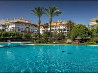 Opportunity to buy a very bright and totally exterior apartment 400 meters from the beach in the Dama de Noche Private Urbanization, five minutes from Puerto Banús in Marbella.The house is located on the ground floor of a building with an elevator in block IV of the urbanization, which has 24-hour security, large well-kept tropical gardens, two community pools with unobstructed views of the mountains, six paddle tennis courts, a playground and a popular restaurant.The apartment is distributed over 130 m2 with an entrance hall, living-dining room that leads to the terrace, three bedrooms, two bathrooms, one of them en suite, a fully equipped kitchen with a small utility room and a private garden through which You can access the community gardens and swimming pools, as well as a private garage place is included.It is currently furnished since it has been rented and there is the option to buy it with or without furniture.The floor is marble, the exterior carpentry is white aluminum and climalit, the interior carpentry is made of wood and has air conditioning.It is located in a well-connected area with good road access, five minutes from the Corte Inglés and the most luxury shopping areas in Marbella and Puerto Don José Banús.This apartment apart from being a great holiday home or all year-around living, it is a great investment with high ROI.