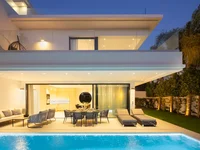 Presenting two contemporary villas in the luxurious area of Rio Verde, on the beachside of the Marbella Golden Mile. These modern villas embody the definition of modern coastal living with sharp structures that impress and white exterior paint symbolic of traditional white houses along the coast. The contemporary kitchens boast ample storage space and open up to seamless indoor-outdoor living, allowing for year-round enjoyment of the Marbella climate. The interiors are elegant and sophisticated, with a soft colour palette that soothes and creates a relaxing atmosphere. Both stunning villas offer spacious accommodation and luxurious amenities. The first villa features 3 bedrooms, each with its own distinct charm and direct terrace access. The second villa also has 3 bedrooms, each with an ensuite bathroom and spacious terraces. The open-plan living areas seamlessly blend with the outdoor terraces and gardens, creating an ideal setting for hosting guests and enjoying the Mediterranean climate. These villas are modern masterpieces by the sea, offering luxurious contemporary living in a prime location.