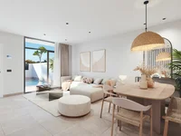 The house with a modern design, with an area of 108 square meters. m, consists of a living room with an open kitchen, three bedrooms, two bathrooms, a terrace and a solarium of 429 square meters. m. There is a swimming pool near the house. The price includes: furnished and technically equipped kitchen (ceramic stove, column oven and microwave oven, hood, refrigerator, dishwasher), equipped and furnished bathrooms, interior and exterior lighting, built-in cabinets, blinds on windows, water heating system, air conditioning system with 2 air conditioners, TV pre-installation, Internet, furniture throughout the house, decor elements, street furniture near the pool, summer kitchen in the solarium. The city of San Pedro del Pinatar is a unique place. Its uniqueness lies in its location on the shores of two Mar Menor Seas and the Mediterranean Sea. Due to its beauty and urban identity, San Pedro is popular among Spaniards and Europeans for recreation and permanent residence. The city has developed infrastructure, schools, supermarkets, bars, restaurants, sports halls, spa hotels, etc. Possible online reservation, installments during construction, as well as a loan at 3-4.5% per annum. Buying property in Spain, you can obtain a residence permit in Spain. Our company helps to issue a residence permit of any type.