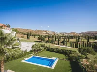 Step outside onto the 3 spacious terraces, an oasis of tranquility where you can relax and cherish unforgettable moments with your loved ones. From here, admire breathtaking views of the golf course, surrendering to the enchantment of the surroundings. The outdoor space features a generous swimming pool and peaceful areas that beckon you to disconnect from the outside world and embrace the serenity of this paradise.