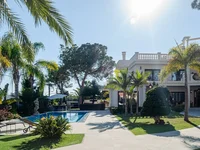 Impressive Mediterranean style villa with stunning sea views in Dehesa de Campoamor. Living in this first-class property, you will enjoy the proximity to the beach, beautiful sea views and fantastic sunsets. Villa in two floors with an area of 606 m2 is built on a plot of 1218 m2. The house includes five bedrooms, five bathrooms, a living room, a kitchen, a spacious comfortable dining room, a spacious terrace with several recreation areas. On the first floor there is a guest area with a spacious living room with kitchen, two bedrooms, two bathrooms. On the second floor there are three bedrooms, three bathrooms, a dressing room. All floors of the house are connected by an elevator and stairs. On the roof there is a solarium with a gazebo, which offers views of the sea and the surrounding area. The price includes: built-in wardrobes, equipped kitchen, household appliances, storage room, terrace, jacuzzi, full set of furniture, alarm system, garage. The villa is only 500 meters from the beach. On the plot there is a swimming pool, a barbecue area, in the basement of the house there is a large garage. During the construction of the house, high-quality materials were used, and the colors are carefully combined, creating a cozy and unique house. The villa is sold fully furnished and equipped. Dehesa de Campoamor is a resort town on the coast at the southernmost point of the Costa Blanca, immersed in the greenery of pines and built up mainly with expensive villas. The magnificent sandy beaches of Playa de la Glea (Big Beach), Playa de Barranco Rubio (Small Beach), Playa Aguamarin, with many restaurants and bars, fully equipped parking for yachts and boats. The city is landscaped with bicycle paths and places for picnics, with equipped areas for Barbecue, shops, a polyclinic, a riding school, a yacht club. It is possible to book online, as well as purchase on credit from the bank at 3-6% per annum. Buying property in Spain, you can obtain a residence permit. Our company helps to issue a residence permit of any type.