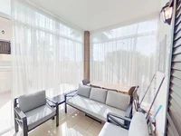 The property features a glazed terrace that can be enjoyed year-round. The building is entirely exterior and boasts the best orientations: east and south from the terrace, living room, and kitchen;