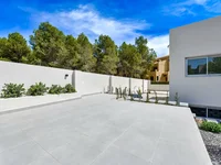 The plot has an ideal location to buy villa in Finestrat, Alicante. The area is in continued development and has been chosen for magnificent projects of apartment residentials and independent luxury villas, the reason is that the area counts all the services needed for a comfortable lifestyle. This villa is just 5 minutes from a shopping center, an exclusive golf course, and the city center of Benidorm. Here you can enjoy a large list of leisure options all year round. The nearest beach is situated less than 10 minutes by car, and within a similar distance, you can find multiple theme parks, like Terra Mitica. From Finestrat, the Alicante Airport is located at approximately 40 minutes by car, which is an easy trip thanks to the highway AP-7.