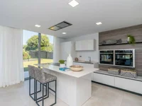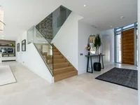 Step inside to discover a grand interior with double height ceilings and full-height Schüco windows flooding the space with natural light. The sleek open-plan kitchen is ideal for culinary enthusiasts, while a dedicated office space provides functionality.